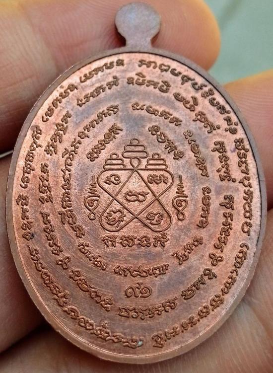 เคาะเดียวแดง.....เหรียญรูปไข่หลังยันต์ครู รุ่นไหว้ครู91 ท่านก๋งเตื่อง เตชปญฺโญ ปี 57 เนื้อทองแดงผิวไฟ ตอกนัมเบอร์ 6396