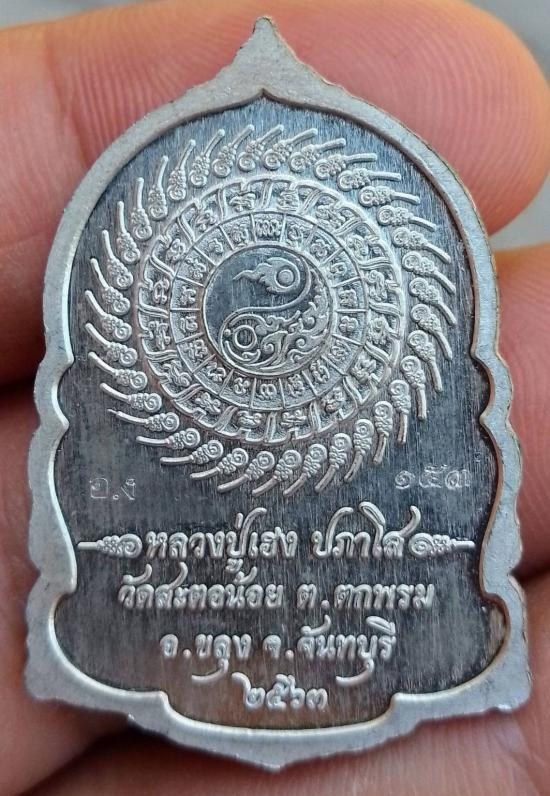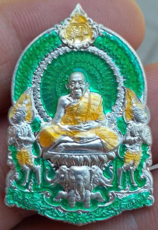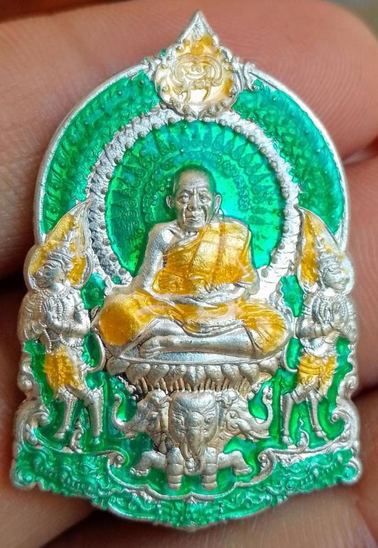 เคาะเดียวแดง.....เหรียญนั่งพาน รุ่นเฮงร่ำรวย หลวงปู่เฮง วัดสะตอน้อย จังหวัดจันทบุรี ปี 63 เนื้อเงินลงยาเขียว ตอกนัมเบอร์ 153