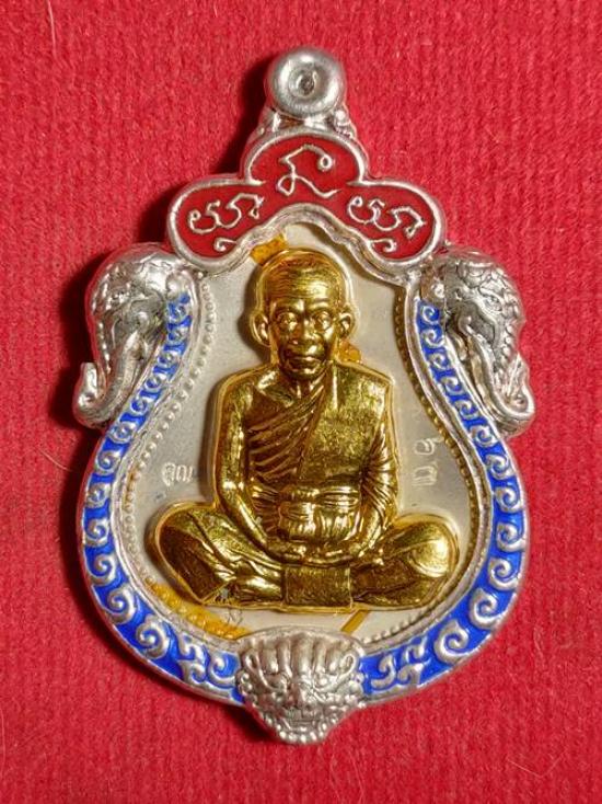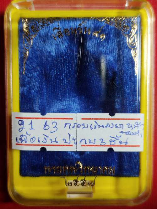 เหรียญเสมาเลื่อนขั้น 91 หลวงพ่อคูณ ปริสุทโธ ออกวัดบ้านไร่ ปี 2557 เนื้อ เงินปะกบ 3 ชิ้น กรอบเงินลงยาหน้าทองคำ หมายเลข 63 ราคาจอง 5000 บาท เคาะเดียวแดง |