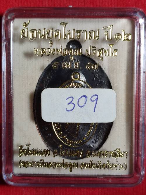 เหรียญย้อนยุคโบราณ ปี 12 หลวงพ่อคูณ ปริสุทโธ ออกวัดบ้านไร่ ปี 2557 เนื้อ นวะ หมายเลข 309 สภาพสวย เคาะเดียวแดง