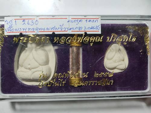ชุดกรรมการพระปิดตาหลวงพ่อคูณ ปริสุทโธ รุ่น คูณพีนล้าน ออกวัดบ้านไร่ ปี 2557 เนื้อ ผงพุทธคุณผสมจีวรฝังตะกรุด 3 กษัตริย์ หมายเลข 2630 ตะกรุด 1 ดอก เคาะเดียวแดง