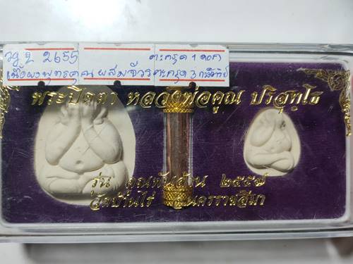 ชุดกรรมการพระปิดตาหลวงพ่อคูณ ปริสุทโธ รุ่น คูณพีนล้าน ออกวัดบ้านไร่ ปี 2557 เนื้อ ผงพุทธคุณผสมจีวรฝังตะกรุด 3 กษัตริย์ หมายเลข 2655 ตะกรุด 1 ดอก เคาะเดียวแดง
