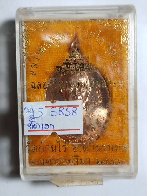 เหรียญหลวงพ่อคูณ ปริสุทโธ รุ่น ฉลองวิหารเทพ ออกวัดบ้านไร่ ปี 56 เนื้อ ทองแดงขัดเงา หมายเลข 5858 สภาพสวย เคาะเดียวแดง