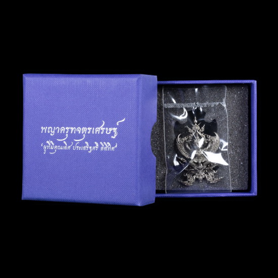 พญาครุฑ รุ่นพญาครุฑจตุรเศรษฐ์ หลวงพ่อวิจิตร อนุชาโต วัดรางกระต่ายรังสรรค์ จังหวัดกาญจนบุรี ๒๕๖๒ เนื้อซิลเวอร์พลัส หมายเลข ๒๑๖ พร้อมกล่องเดิม |
