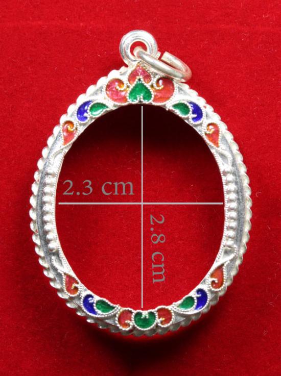 กรอบเงินลงยา งานสุโขทัย ขนาดกรอบใน 2.3 x 2.8 ซม. สภาพดีตามรูปครับ |