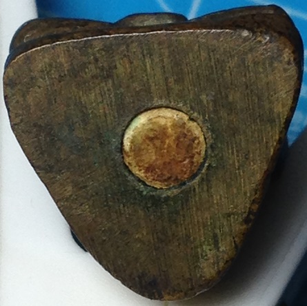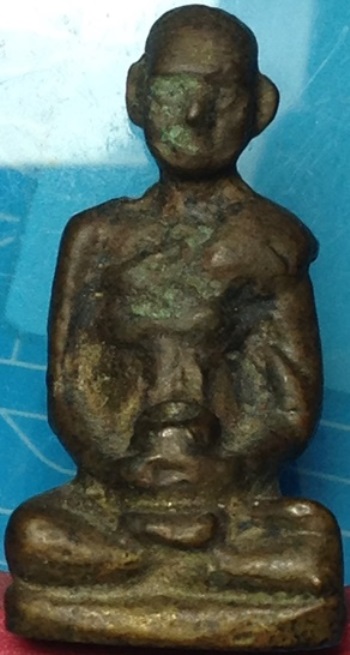 รูปหล่อสมเด็จโต อุ้มบาตร เนื้อทองผสม ก้นอุดผง วัดทองพุ่มพวง สระบุรี ปี 2495 ฐานกว้ง 1.8x1.6 สูง 3.4 ซม.