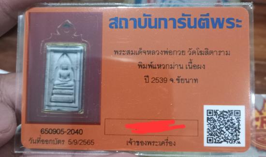 พระสมเด็จแหวกม่าน ย้อนยุค ปี 39 หลวงพ่อกวย วัดโฆสิตาราม หลังมีตราปั๊ม ไม่มีกล่อง พร้อมบัตร G คะ