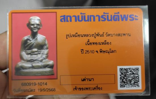 รูปหล่อ หลวงพ่อพันธ์ วัดบางสะพาน เนื้อทองเหลือง ขันลงหิน รุ่นแรก ปี 2510 พิษณุโลก