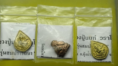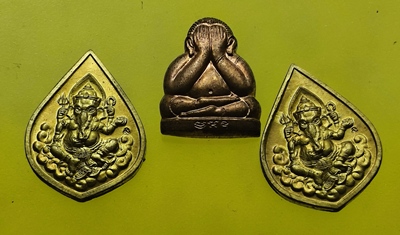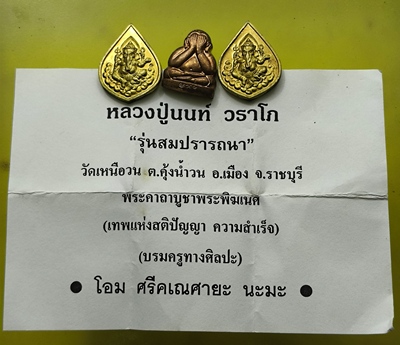 จัดชุดสามองค์ พระปิดตา หลังรูปเหมือน เนื้อทองแดง+พระพิฆเนศ เนื้อฝาบาตร รุ่นสมปราถนา หลวงปู่นนท์ วราโภ วัดเหนือวน จ.ราชบุรี สวย พร้อมใบคาถา มาเป็นชุด วัดใจ |