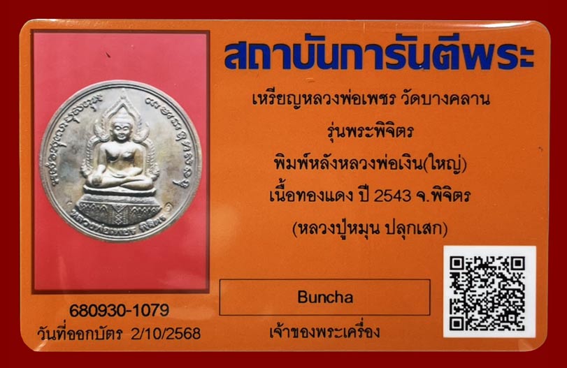 หรียญบาตรน้ำมนต์ หลวงพ่อเงิน วัดบางคลาน หลังหลวงพ่อเพชร จ.พิจิตร ปี2542-2543 พิมพ์ใหญ่ |