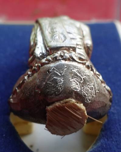 เนื้อเงินพดด้วง ตอกโค๊ดและหมายเลข ๔๑๔ ใต้ฐานติดหนังเสือ มีรอยจาร มีกล่องเดิม รับประกันตามกฎ ออกบัตรเองลดไป 500 บาทจากราคาปิดประมูล