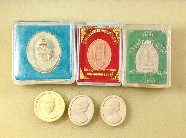 พระผงสมเด็จพระสังฆราชฯ วัดบวรฯ + พระผง วัดพระพุทธบาทสระบุรี + พระผง หลวงปู่บุดดา วัดกลางชูศรีเจริญสุข สิงห์บุรี +พระผงหลวงพ่อรวย วัดตะโก อยุธยา 3 องค์ |