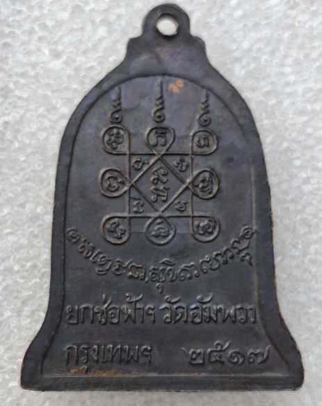 เป็นอีกหนึ่งเหรียญปีลึกของหลวงพ่อเกษม เขมโก ครับที่น่าบูชาครับสร้างหลังจากเหรียญระฆังปี16ดังไปแล้วประสบการณ์ ทหารยิงนักศึกษาด้วยM16กระสุนไม่ระคายผิวแม้แต่น้อย ต่อแต่นั้นมาผู้คนเล่าขานถึงพุทธคุณของท่านมากมายชื่อเสียงเริ่มโด่งดังไปทั่วผู้คนที่รู้ข่าวต้องเหมารถมาลำปางกราบหลวงพ่อและมาบูชาเหรียญระฆังผู้คนมากันมืดฟ้ามัวดินจนแน่นสุสาน ต่อมาปี17ทางเจ้าอาวาส วัดอัมพวา กรุงเทพมหานคร ได้ขออนุญาติหลวงพ่อเกษม ให้ออกเหรียญให้เหมือนเหรียญระฆัง16จะแตกต่างใบหน้าหลวงพ่อตัวยันต์ตัวหนังสือลายกนกเพิ่มตัวนะสามตัวชึ่งออกแบบได้สวยงามมากไม่แพ้เหรียญระฆัง16 ครับ บูชาใช้แทนเหรียญระฆัง16 ได้สบาย สบายกระเป๋าเราด้วยครับ ความจริงหายากกว่าเหรียญระฆัง16 โดยเฉพาะเนื้อเงิน กะไหล่ทอง ส่วนเนื้อทองคำยังไม่เคยเห็นครับ วัตถุมงคลใดที่หลวงพ่อเกษม ได้อธิฐานจิตแล้ว มีพลังพุทธคุณเต็มเท่าเทียมกัน |