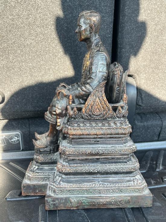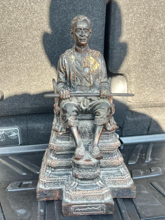 พระบูชา พระบรมรูปในหลวงนั่งบัลลังก์ 60 พรรษา ฐานกว้าง 8 นิ้ว สูง 15 นิ้วเนื้อปูนอาบทองแดง