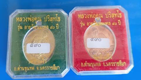 เหรียญหลวงพ่อคูณ รุ่น อายุวัฒนมงคล 90 ปี เนื้อทองแดง/เนื้อผาบาตร ปี 2557 กรรมการ หมายเลข 590 รับพระ2องค์