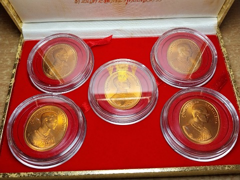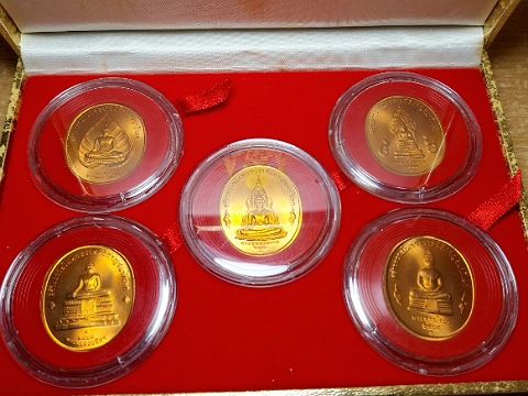 เหรียญรัชกาลที่ 9 ชุดเหรียญพระพุทธปัญจภาคี ในพระราชพิธีกาญจนาภิเษก ครบ 5 แบบ ปี 2539 เนื้อทองแดง กล่องสวยๆเดิมๆ |