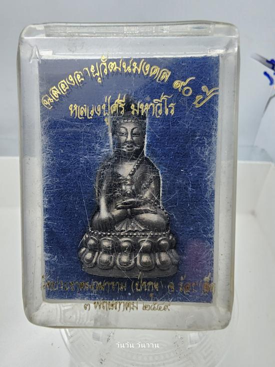 พระกริ่งฉลองอายุวัฒนมงคล 90 ปี เนื้อนวะโลหะ หลวงปู่ศรี มหาวี โร ปี 2549 หมายเลข ๖๑๑ สวยพร้อมกล่องเดิมเคาะเดียวเบาๆครับ |