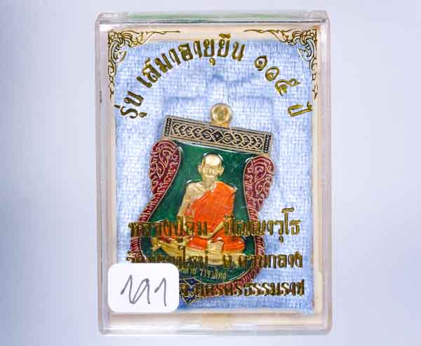*เหรียญเสมาอายุยืน115ปี หลวงปู่อิ่ม วัดทุ่งนาใหม่ ด้านหน้า พ่อท่ายคล้าย วาจาสิทธิ์ หลังหลวงปู่อิ่ม เนื้อทองทิพย์ลงยา |