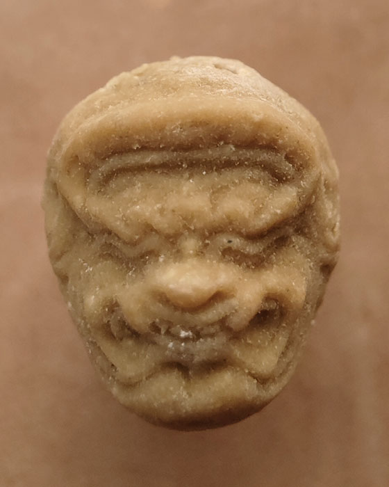 มวลสารที่หมักโขลกมี ปูนเปลือกหอย ผงอิทธิเจสายศิลปิน แป้งผัดหน้าศิลปิน ผงที่ป่นจากกระดาษข่อยโบราณคราวที่ซ่อมหัวโขนพระพิราพเก่าของหมื่นพจนาเสนาะ ( ถึก รัตนเกต) กล้วยน้ำว้า น้ำผึ้ง น้ำมันตั้งอิ้ว...หายากเพราะไม่มีใครตัดแบ่งครับ |