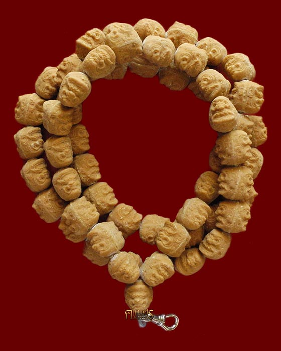 สืบเนื่องจากสมัยที่พ่อยังหนุ่มนั้น เห็นแผงขายพระเครื่องที่วัดมหาธาตุมีสร้อยประคำคอเนื้อผงวางขาย ลูกประคำทุกเม็ดขึ้นรูปเป็นพระสมเด็จ พ่อบอกกับตัวเองว่า วันหนึ่งกูจะทำเม็ดประคำเป็นหน้าโขนพระพิราพบ้าง