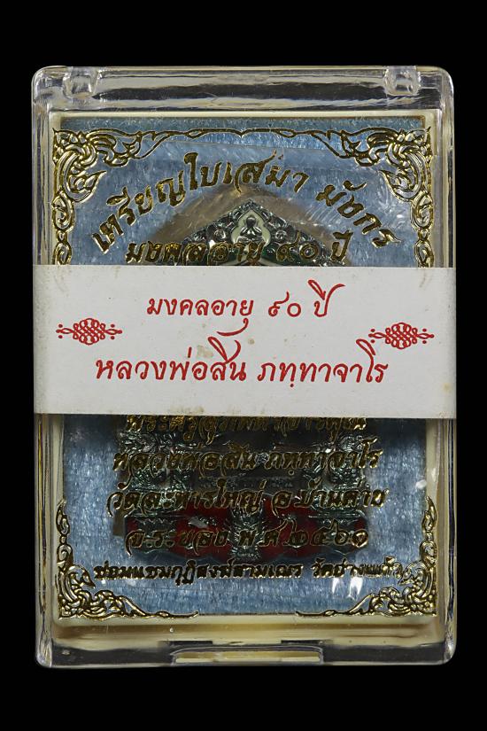 เหรียญใบเสมามังกร มงคลอายุ 90 ปี หลวงพ่อสิน เนื้อนวะลงยา พร้อมกล่องเดิม แดง 100 |