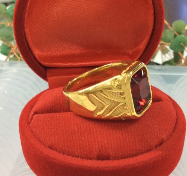 เทขาดทุน++แหวนทองชุบยิงเลเซอร์ แหวนมหามงคลเสริมบารมี หัวพลอยแดงโกเมนสวยมาก สวยๆ |