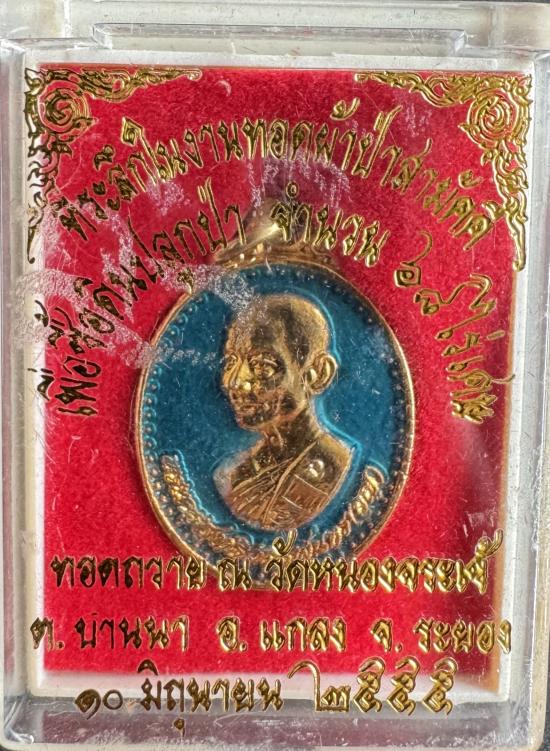 หลวงพ่อบุญกะหลั่ยทองลงยาสีฟ้าหลังพระประจำวันศุกร์พร้อมกล่อง