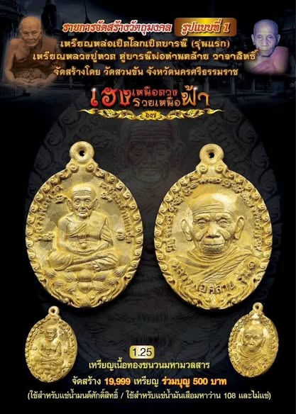 !!! ยกลัง 100 องค์ จอง 50,000 !!! พ่อท่านคล้าย วาจาสิทธิ์ เหรียญเจริญพรรุ่นแรก รุ่น เฮงเหนือดวงรวยเหนือฟ้า เนื้อทองมหาชนวน