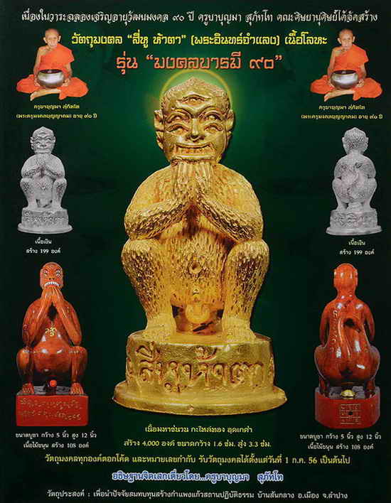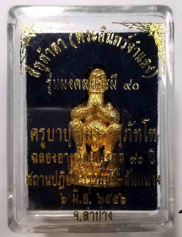 ( เคาะเดียวแดง ) สี่หูห้าตา ครูบาบุญมา สุภัทโท รุ่นมงคลบารมี 90 เนื้อมหาชนวน กะไหล่ทอง ใต้ฐานฝังตะกรุด อุดเกศา ปี 2556 ขนาดกว้าง 1 ซม. สูง 3 ซม.มาพร้อมกล่องเดิมจากวัดครับ