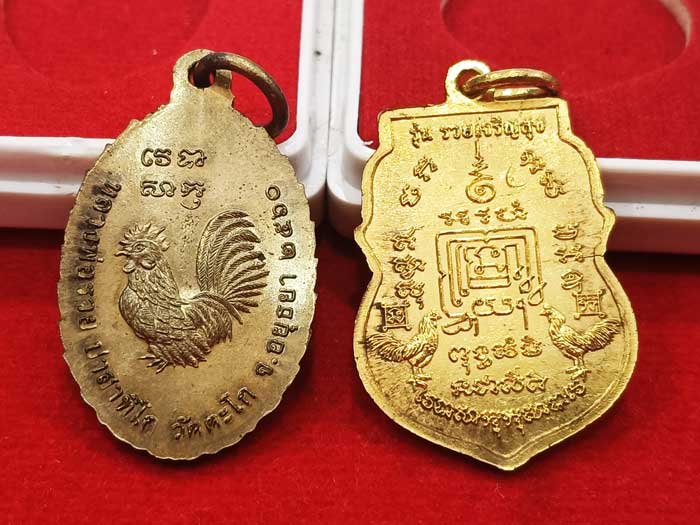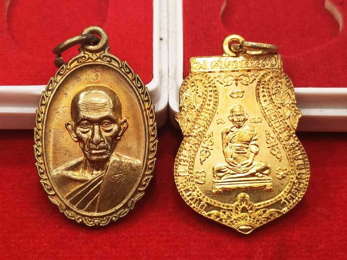 เหรียญหลวงพ่อรวย 2 รุ่น เนื้อทองฝาบาตร กล่องเดิม