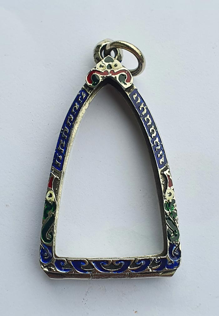 ตลับเงินยกซุ้มลงยา สภาพดีเหมือนใหม่ ใส่พระหลวงปู่ทวด พิมพ์เตารีดใหญ่ พระกริ่งใหญ่ และเกจิอื่นๆขนาดใกล้เคียง ขนาด 2.4x3.9 ซม. |