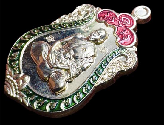 2. เนื้อเงินองค์ทองลำอู่ ปั๊ม 2 หน้า ลงยา 3 สี 385 เหรียญ