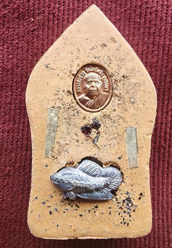 พระขุนแผนหลังปลากัด ไตรมาส 51 เนื้อผงกรุบ้านกร่าง ฝังตะกรุด หลวงพ่อน่วม วัดโพธิ์ศรีเจริญ จ.สุพรรณบุรี