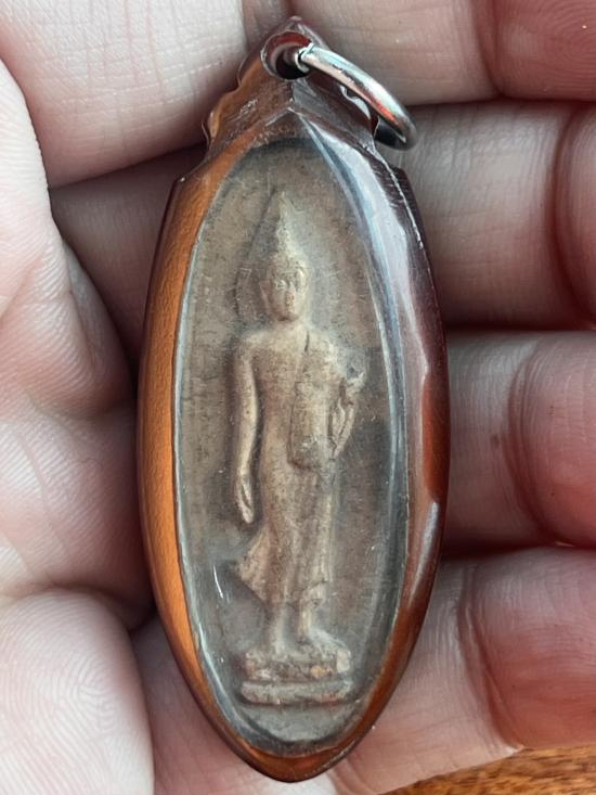 พระลีลา 25ศตวรรษ เนื้อดิน ปี2500 เลี่ยมเก่ามีบิ่นตามรูป