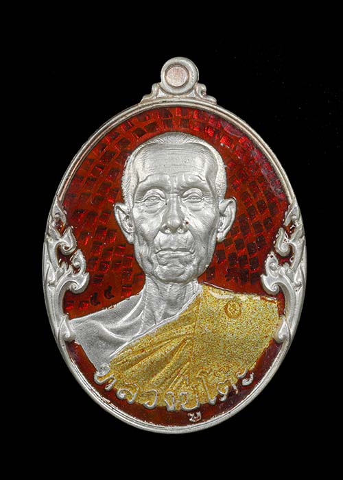 เหรียญหลวงปู่โต๊ะ ออกวัดถ่ำสิงโตทอง จ.ราชบุรี 2565 เนื้อเงินลงยาแดง เลข 44 พร้อมกล่อง สวย เดิม