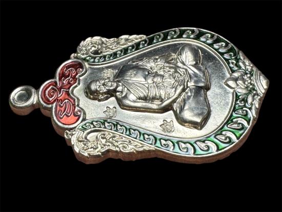 2. เนื้อเงินองค์ทองลำอู่ ปั๊ม 2 หน้า ลงยา 3 สี 385 เหรียญ
