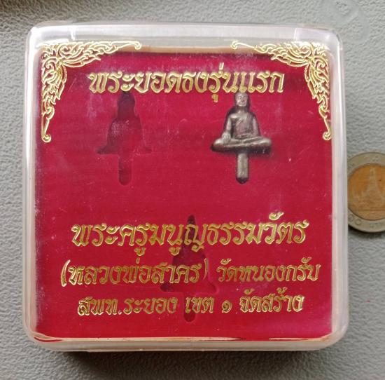 พระยอดธง รุ่นแรก ปี2549 หลวงพ่อสาคร วัดหนองกรับ จ ระยอง เนื้อนวโลหะ แยกจากชุดกรรมการ มีโค้ด ร พร้อมกล่อง ตามรูป |
