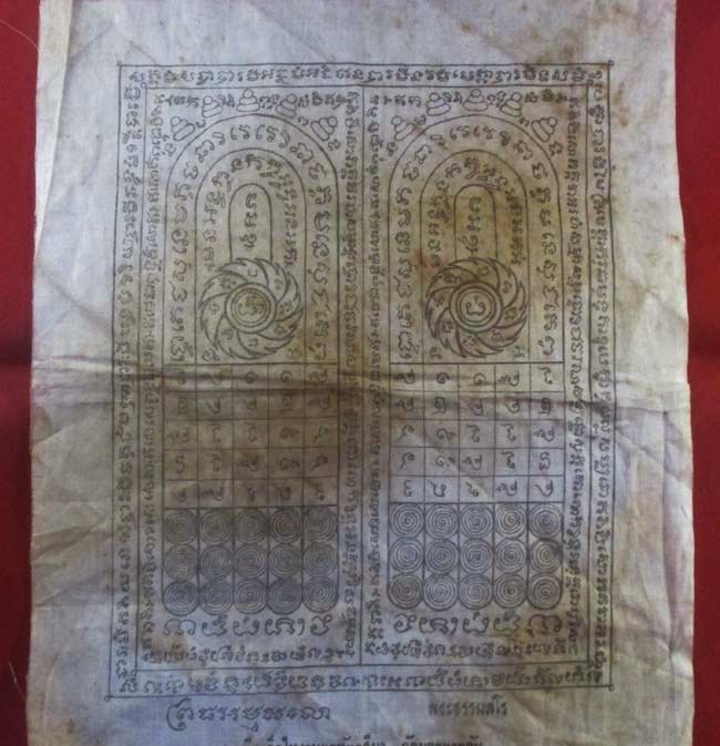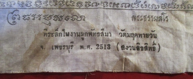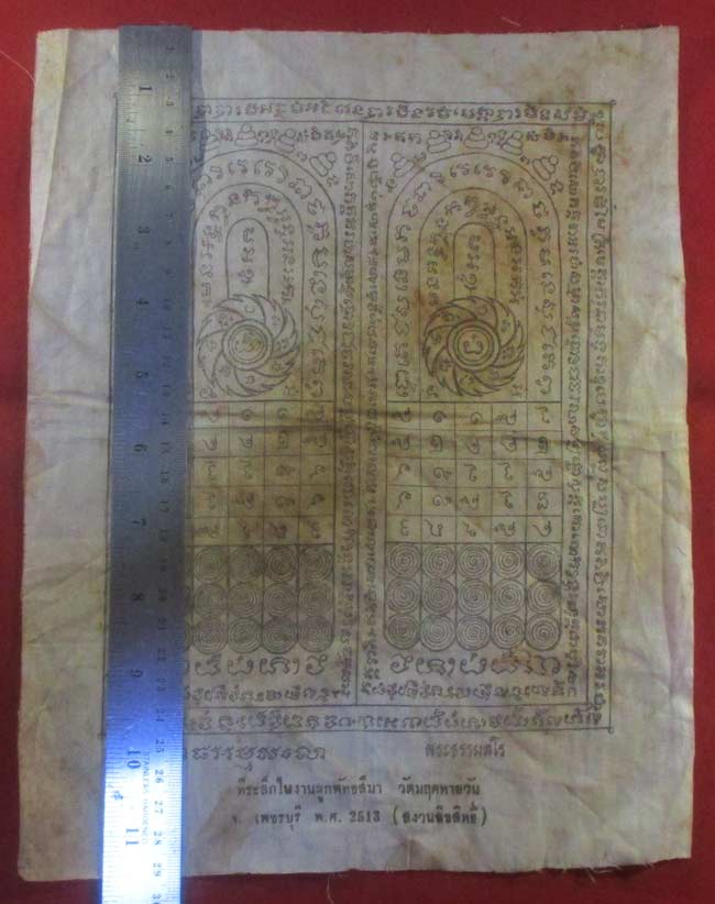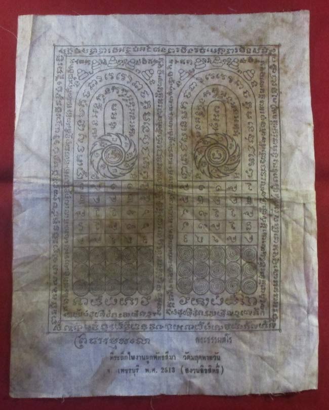 ผ้ายันต์ ที่ระลึกในงานผูกพัทธสีมา วัดมฤคทายวัน จ.เพชรบุรี พ.ศ. 2513 ครับ จาก พ.ศ.ถึงปัจจุบันก็หลายปีแล้วนะครับ