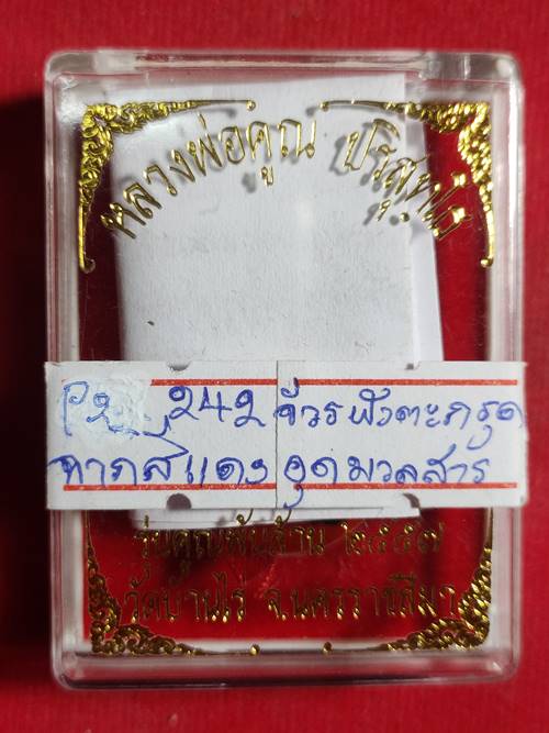 ล็อคเก็ตหลวงพ่อคูณ ปริสุทโธ รุ่น คูณพันล้าน ออกวัดบ้านไร่ ปี 57 ฉากสีแดงหลังอุดมวลสารติดจีวร ฝังตะกรุด หมายเลข 242 สภาพสวย เคาะเดียวแดง