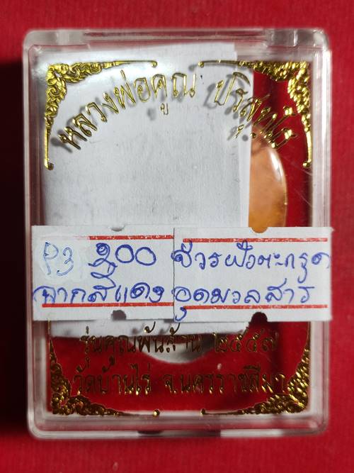 ล็อคเก็ตหลวงพ่อคูณ ปริสุทโธ รุ่น คูณพันล้าน ออกวัดบ้านไร่ ปี 57 ฉากสีแดงหลังอุดมวลสารติดจีวร ฝังตะกรุด หมายเลข 200 สภาพสวย เคาะเดียวแดง