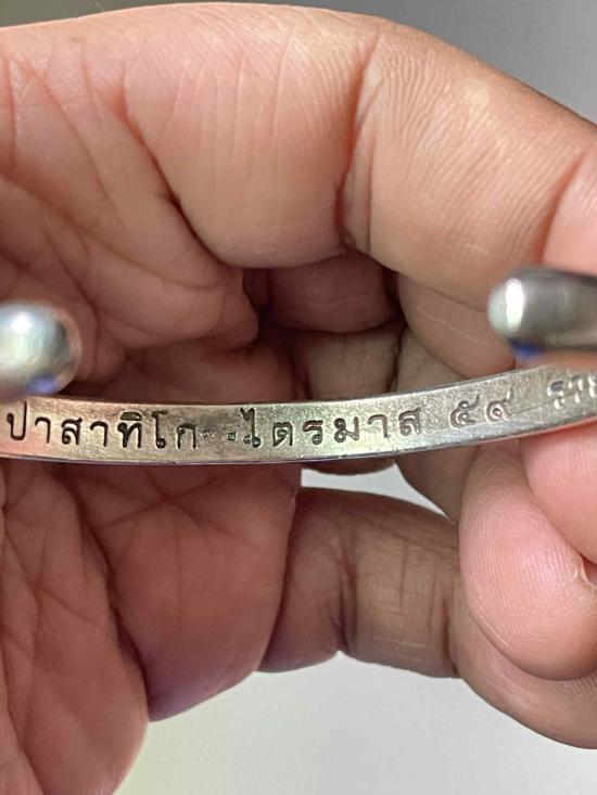 หลวงพ่อรวย วัดตะโก จ.อยุธยา กำไล ไตรมาส59. ปี2559 เนื้อเงิน เลข978 ขนาด2.5บาท ไม่ผ่านการใช้