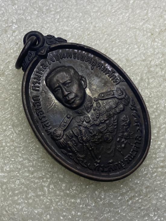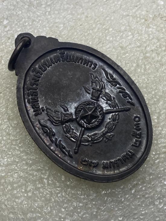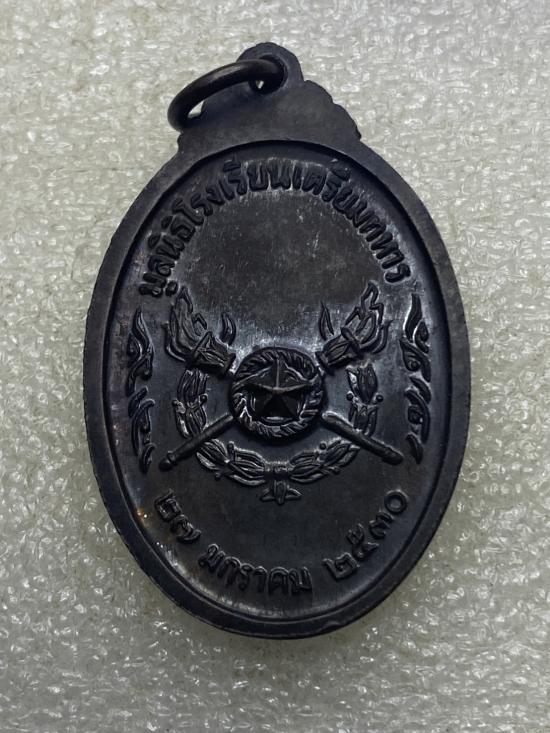 เหรียญกรมหลวงชุมพรเขตอุดมศักดิ์ ที่ระลึกบูรณะศาลเสด็จเตี่ย โดยมูลนิธิโรงเรียนเตรียมทหาร ปี 2530 เนื้อทองแดงรมดำ |