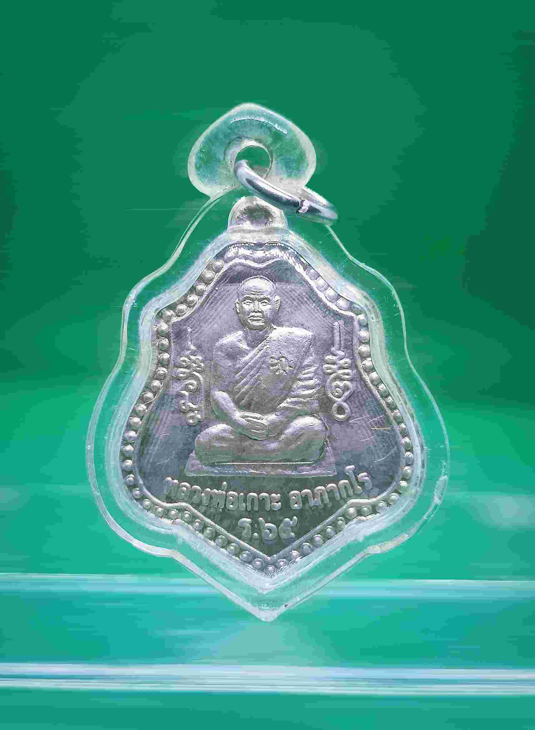 เหรียญหลวงพ่อเกาะ วัดท่าสมอ เนื้อเงิน มีจารมือ เลี่ยมพลาสติกกันน้ำ ตอกโค๊ตที่สังฆาฏิ