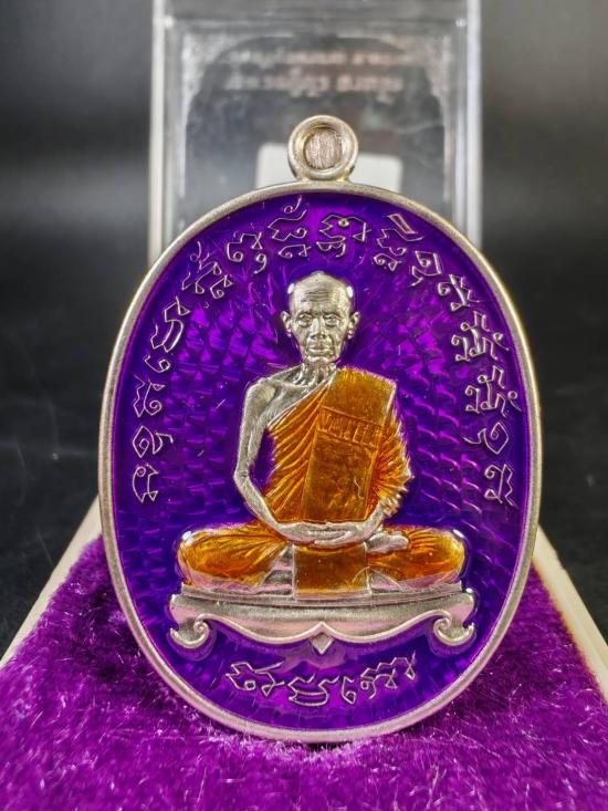 วัดใจ 109 บาท รับพระ 1 กล่อง เหรียญเจริญพรไตรมาส 66 หลวงปู่บัว ถามโก วัดศรีบูรพาราม จ.ตราด เนื้ออัลปาก้าลงยาสีม่วง No. 500 เลขสวย สมนาคุณศูณย์จอง กล่องเดิมๆ