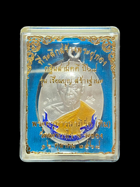 เหรียญห่วงเชื่อม หลวงปู่ทิม วัดละหารไร่ เชื่อมบุญ สร้างฐานะ ปี2568 เนื้อเงินลงยาจีวรโบว์น้ำเงิน เลข 127