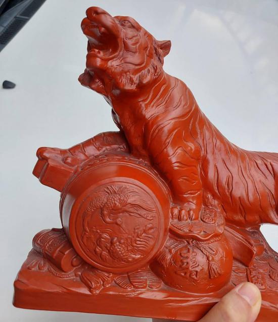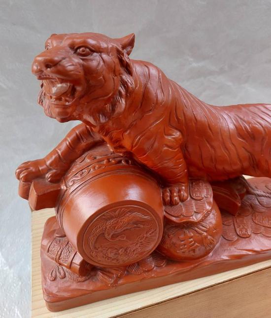 ***วัดใจ***ผ้ายันต์จากศาลเจ้าพ่อเสือ (ฮู้ตั่วเหล่าเอี๊ย) กับ "เสือเหยียบเงิน"เนื้อดินเผา ฐานกว้าง 12 สูง 8.5 นิ้ว |
