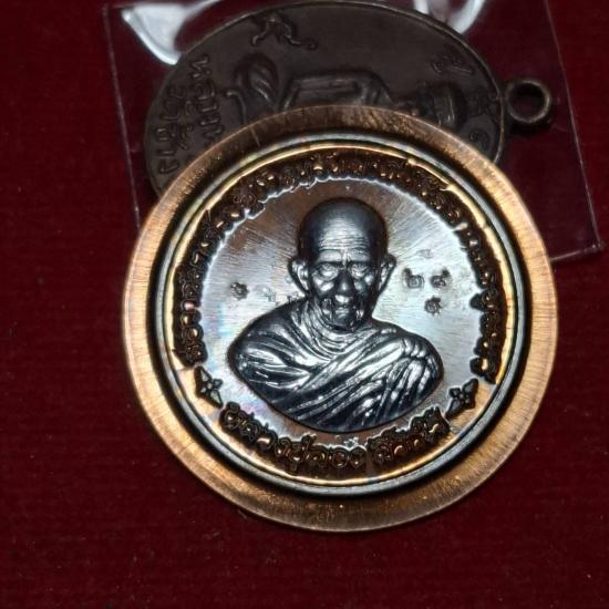 วัดใจเหรียญต่อลายมือหลวงปู่ลองเนื้อชนวนไม่ตัดปีกหน้ากากเงินตอกโค๊ตตอกเลขชัดเจน |