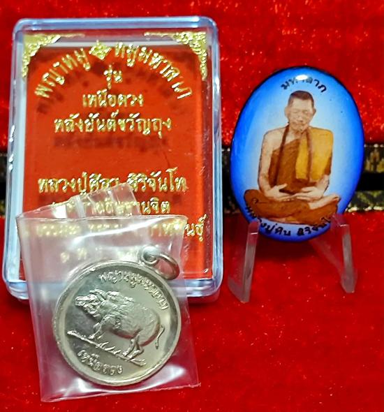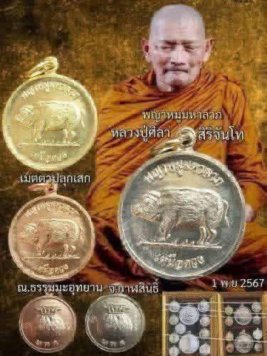 2องค์เคาะเดียว100 เหรียญพญาหมูมหาลาภ เหนือดวงหลังยันต์ขวัญถุง ลป.ศิลา สิริจันโท + ล็อคเก็ต ฝังตะกรุดทอง