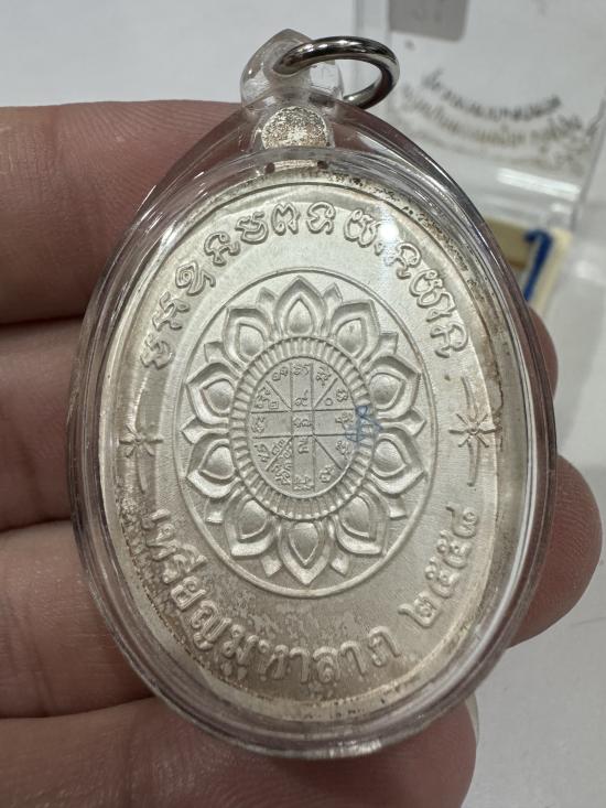 เหรียญมหาลาภ ปี2558 เนื้อเงิน ลงยาสีแดง หน้ากากทองคำ no.21 มีกล่อง