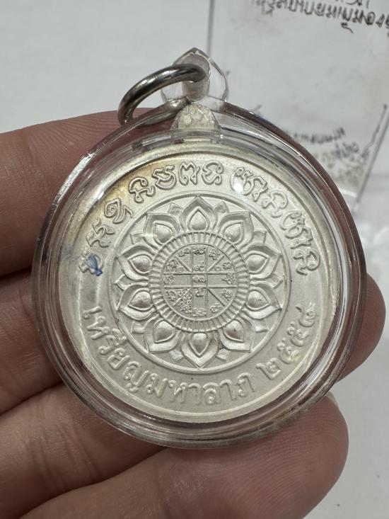 เหรียญมหาลาภ ปี2558(พิมพ์เต็มองค์) เนื้อเงิน ลงยาสีแดง หน้ากากทองคำ no.31 มีกล่อง